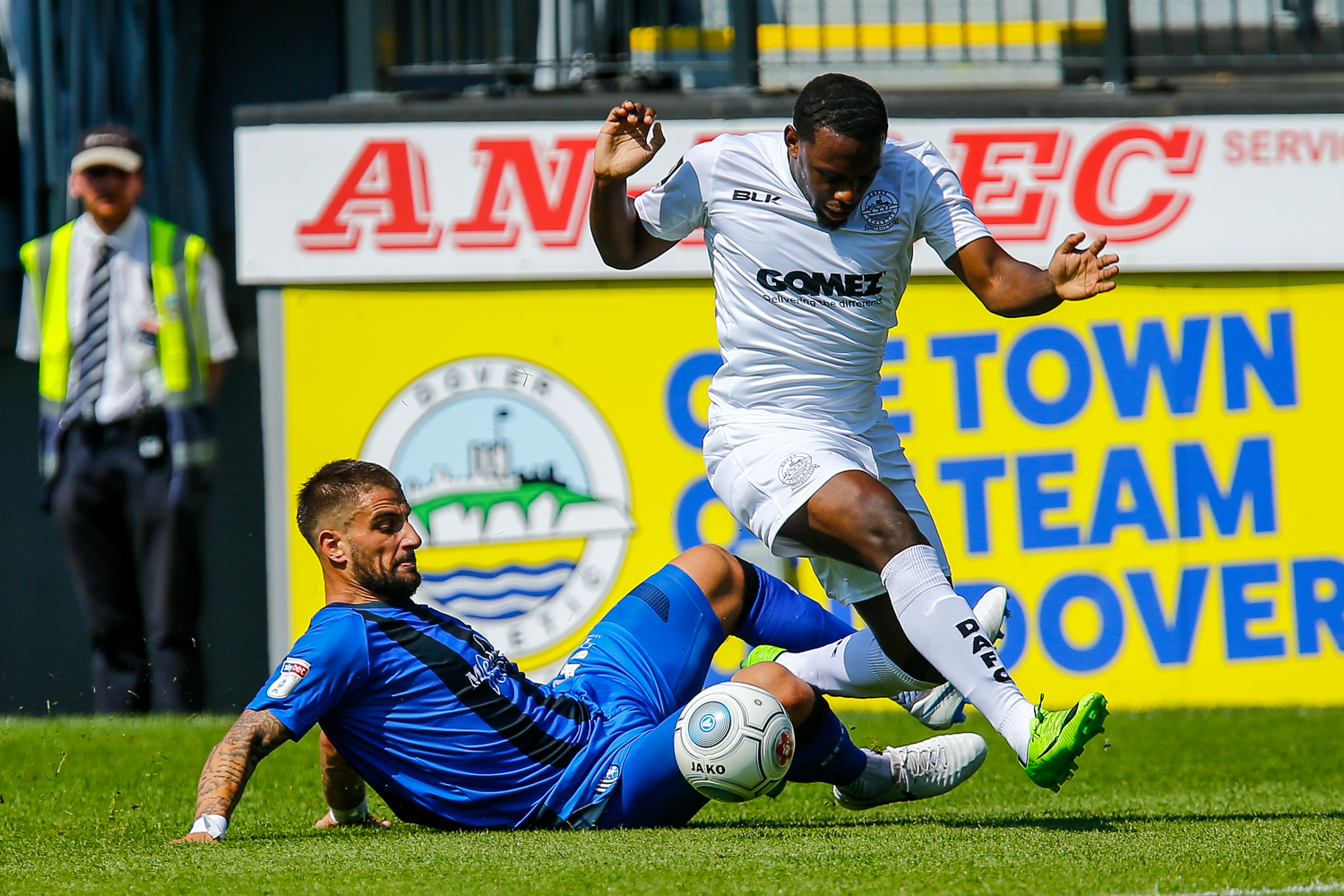 - Action from the pre-season friendly match between Dover Athletic and Gillingham FC at Crabble Stadium, Kent on 21 July 2018.