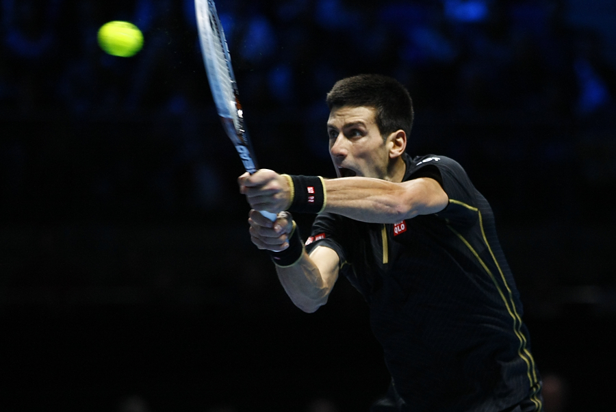 - Novak Djokovic focused on the shot.