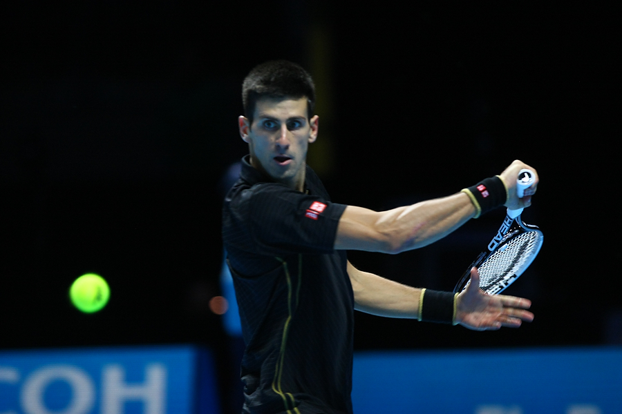 - World Number 1 Novak Djokovic from Serbia plays World Number 4 Stan Wawrinka from Switzerland in the group B. Barclays ATP World Tour Finals 2014. London O2 Arena. (c) Matt Bristow