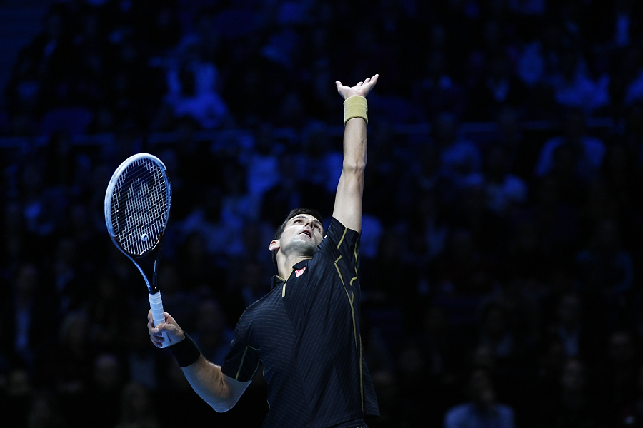 Novak Djokovic plays Marin Cilic in the group B opening games. Barclays ATP World Tour Finals 2014. London O2 Arena. (c) Matt Bristow