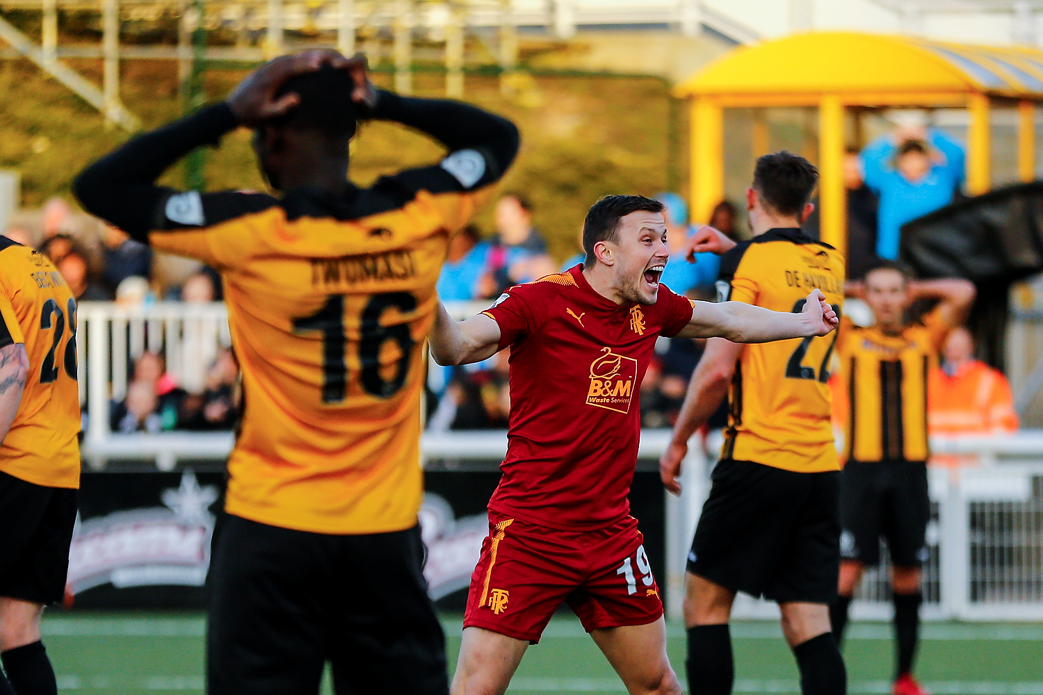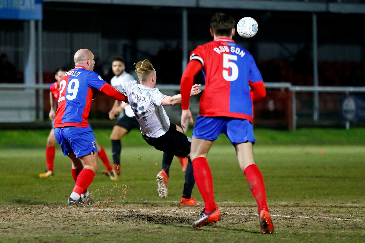 - Braintrees Dan Thompson tries to turn the ball towards goal.