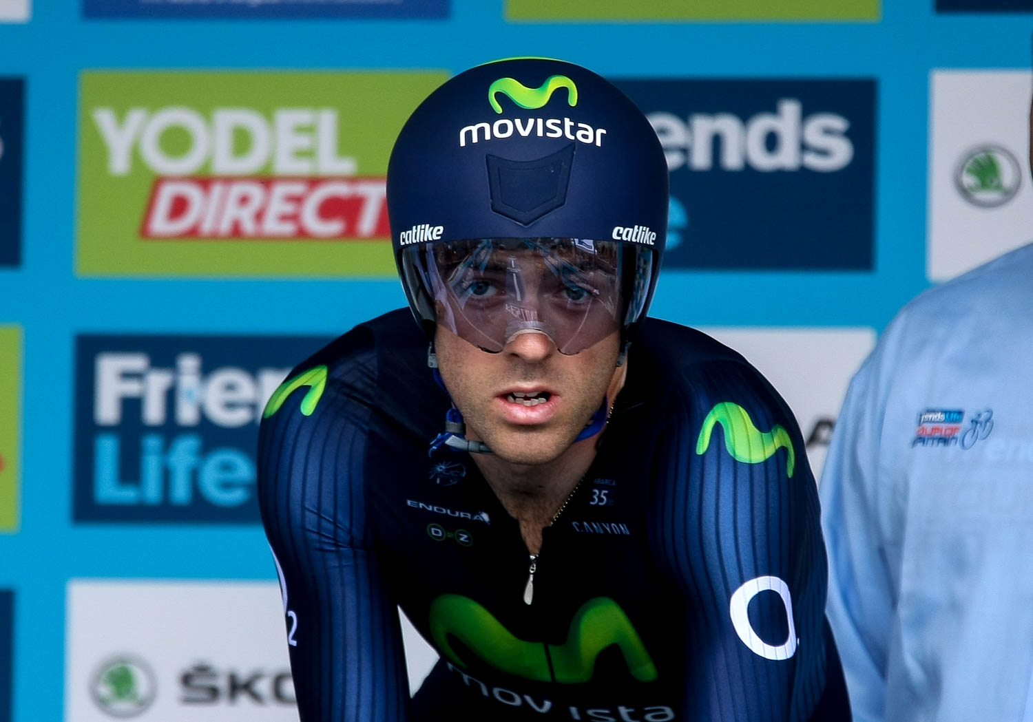 - Movistars’ Alex Dowsett GBR. Focused at the start of the time trial. Friends Life Tour of Britain 2014. Round 8.