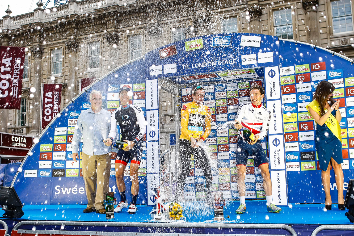 - Tour of Britain Stage 8, London. Overall winner Sir Bradley Wiggins with second place rider Martin Elmiger from team IAM Cycling and third placed Simon Yates from GB Cycling.