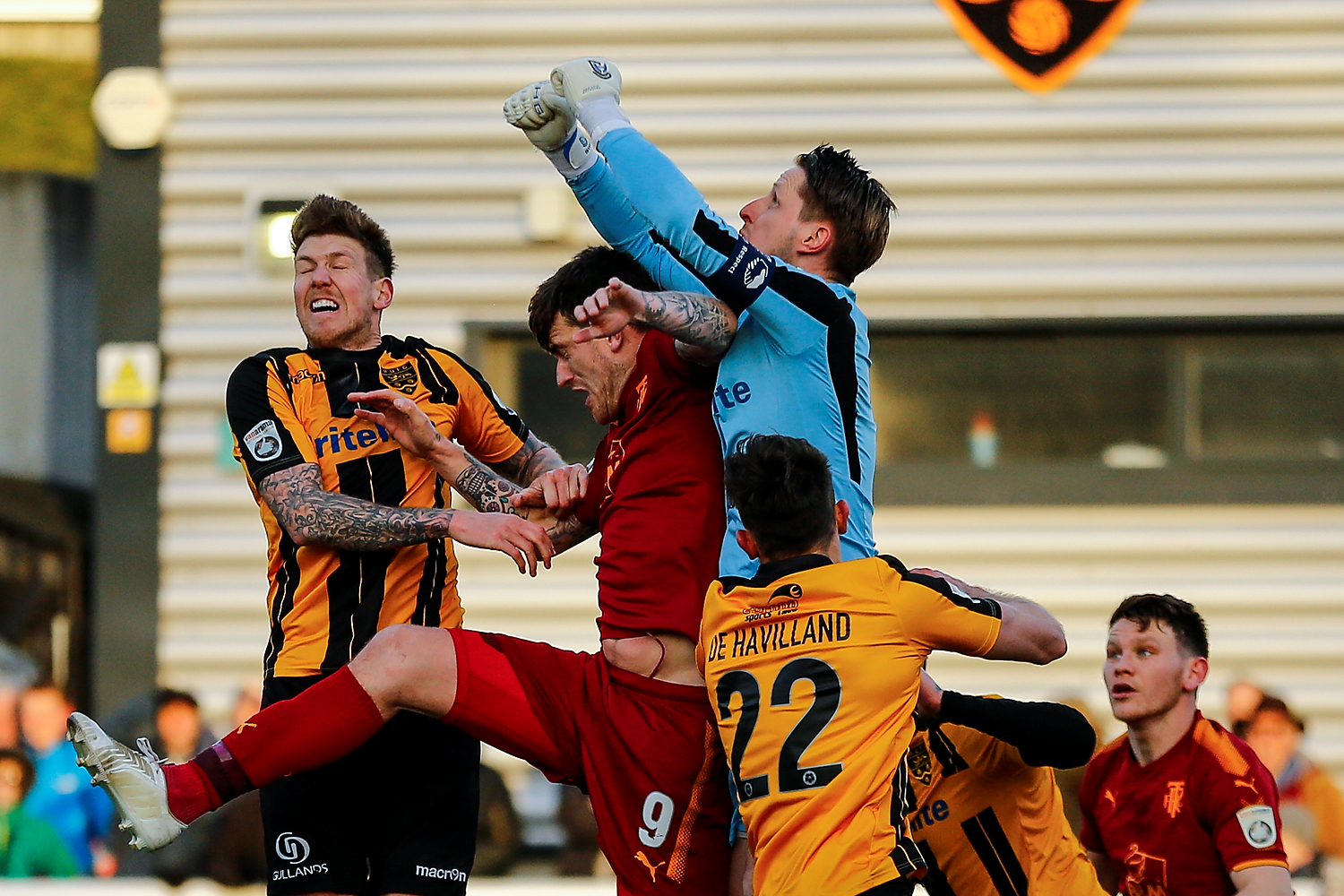 - Maidstones keeper Lee Worgan tries to clear the ball during the Vanorama National League match between Maidstone United and Tranmere Rovers at The Gallagher Stadium.