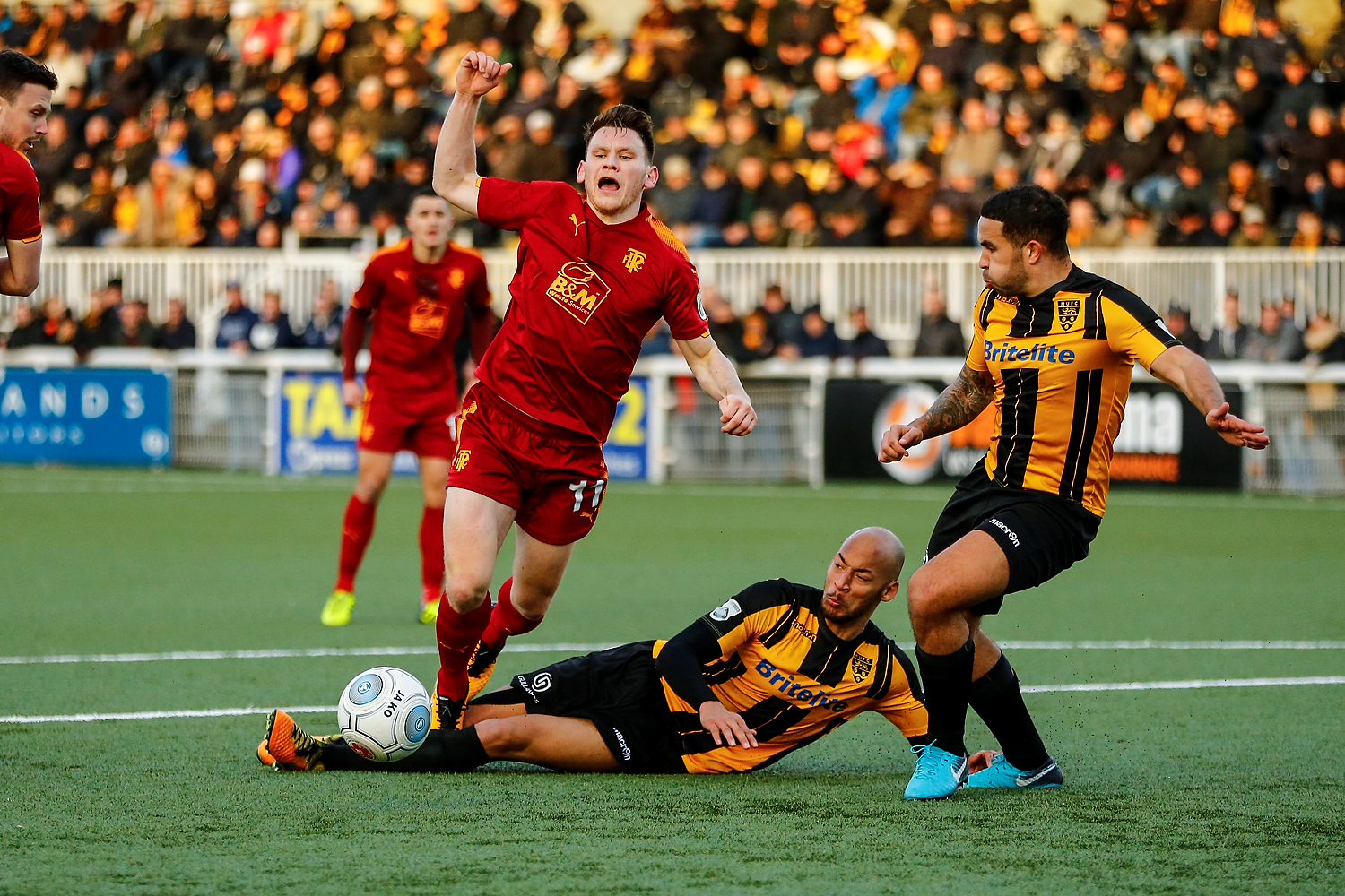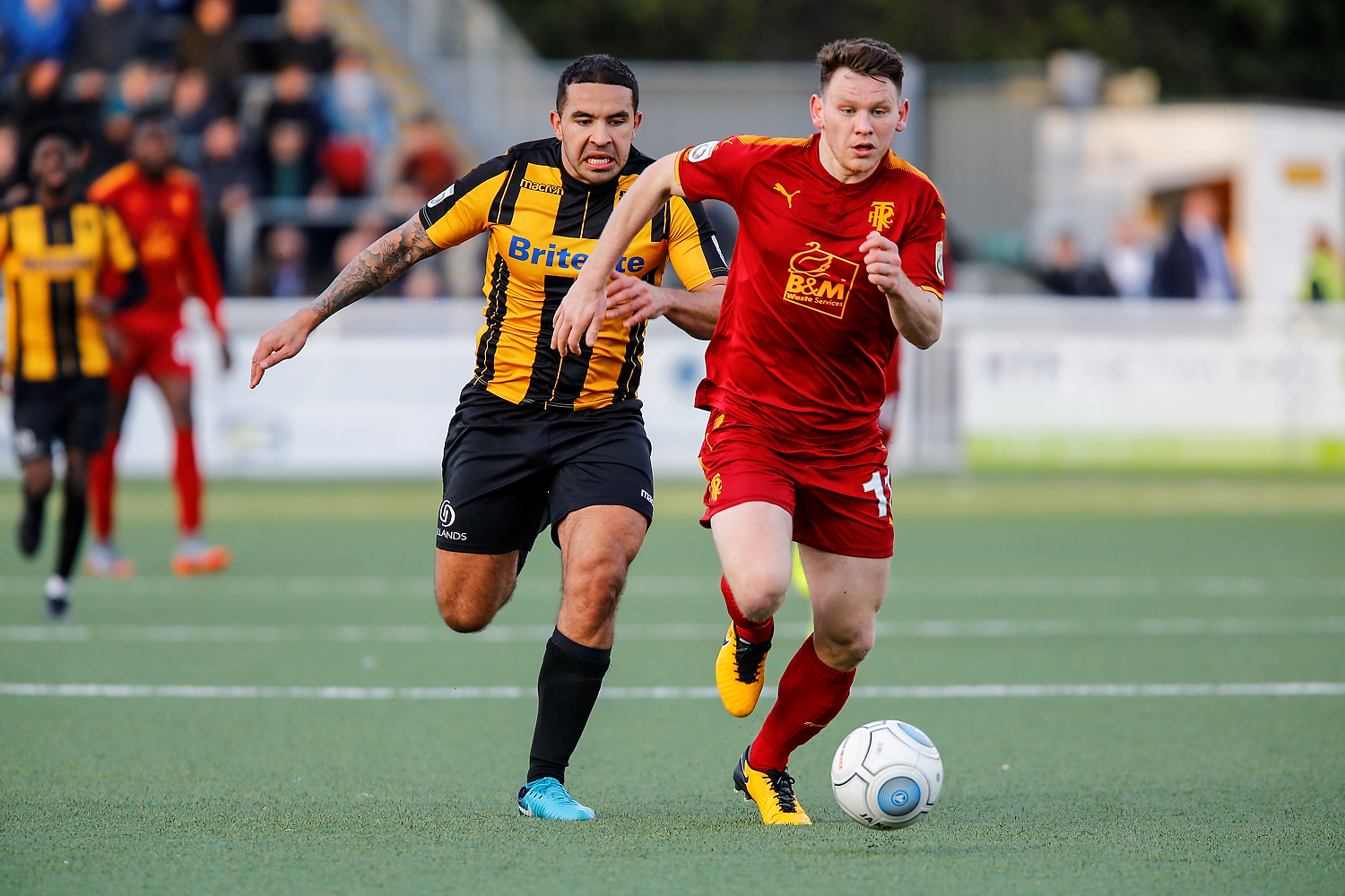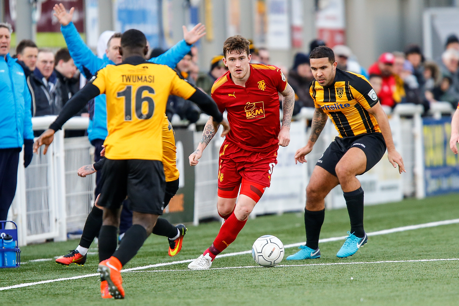 - Tranmeres midfielder James Norwood makes a break closely followed by Maidstones midfielder Jai Reason during the Vanorama National League match between Maidstone United and Tranmere Rovers at The Gallagher Stadium.