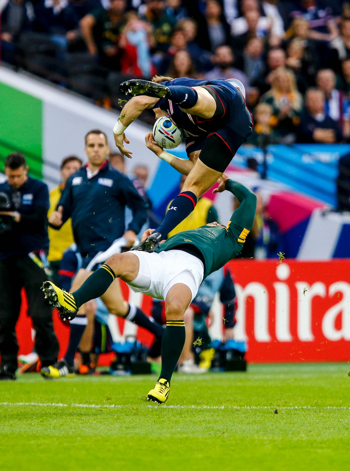 - South Africas Full Back Willie Le Roux and South Africas Wing Bryan Habana clash on a high ball. Rugby World Cup group game from Pool B between South Africa and USA at The Stadium. Queen Elizabeth Olympic Park. (c) Matt Bristow