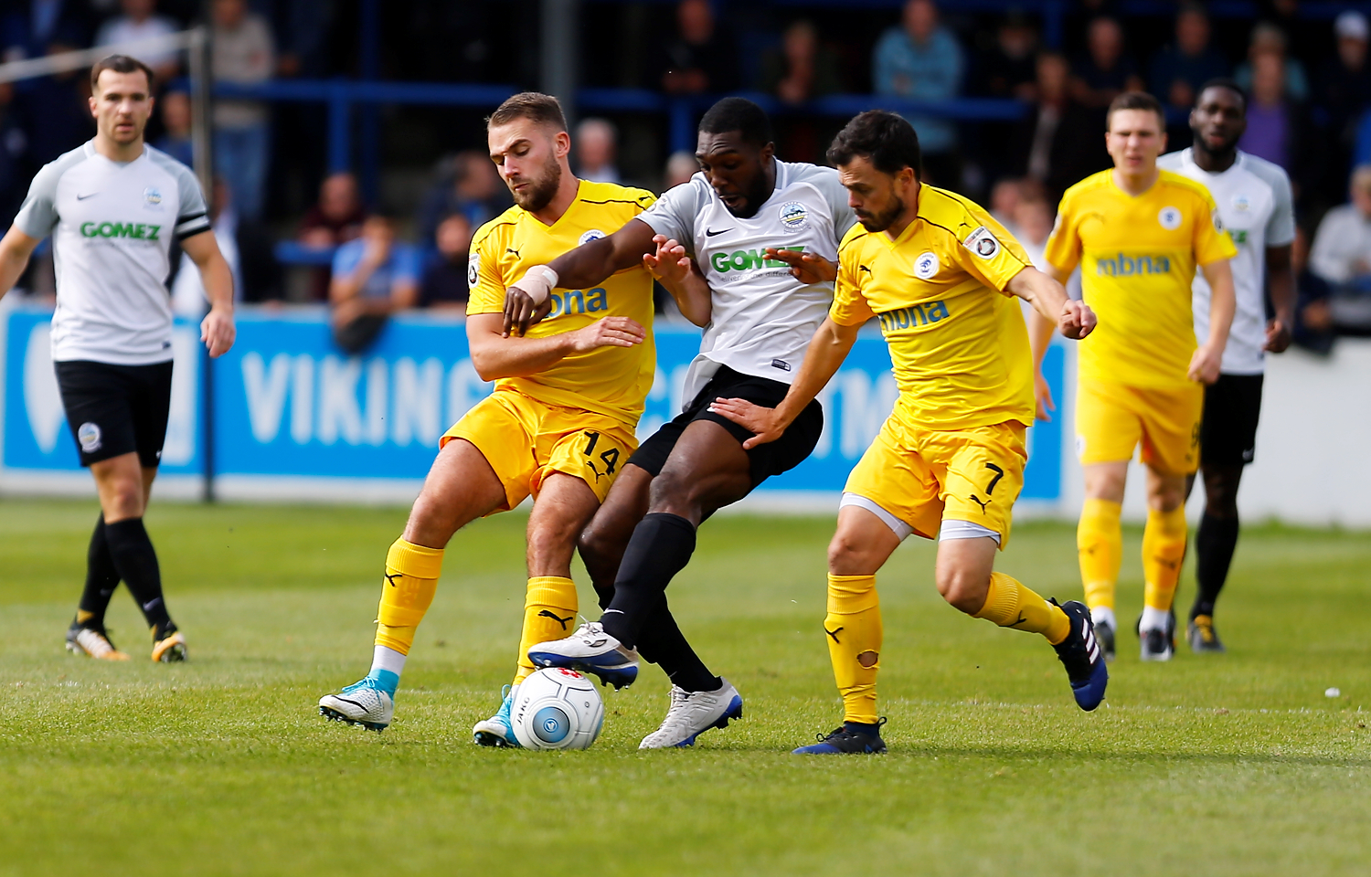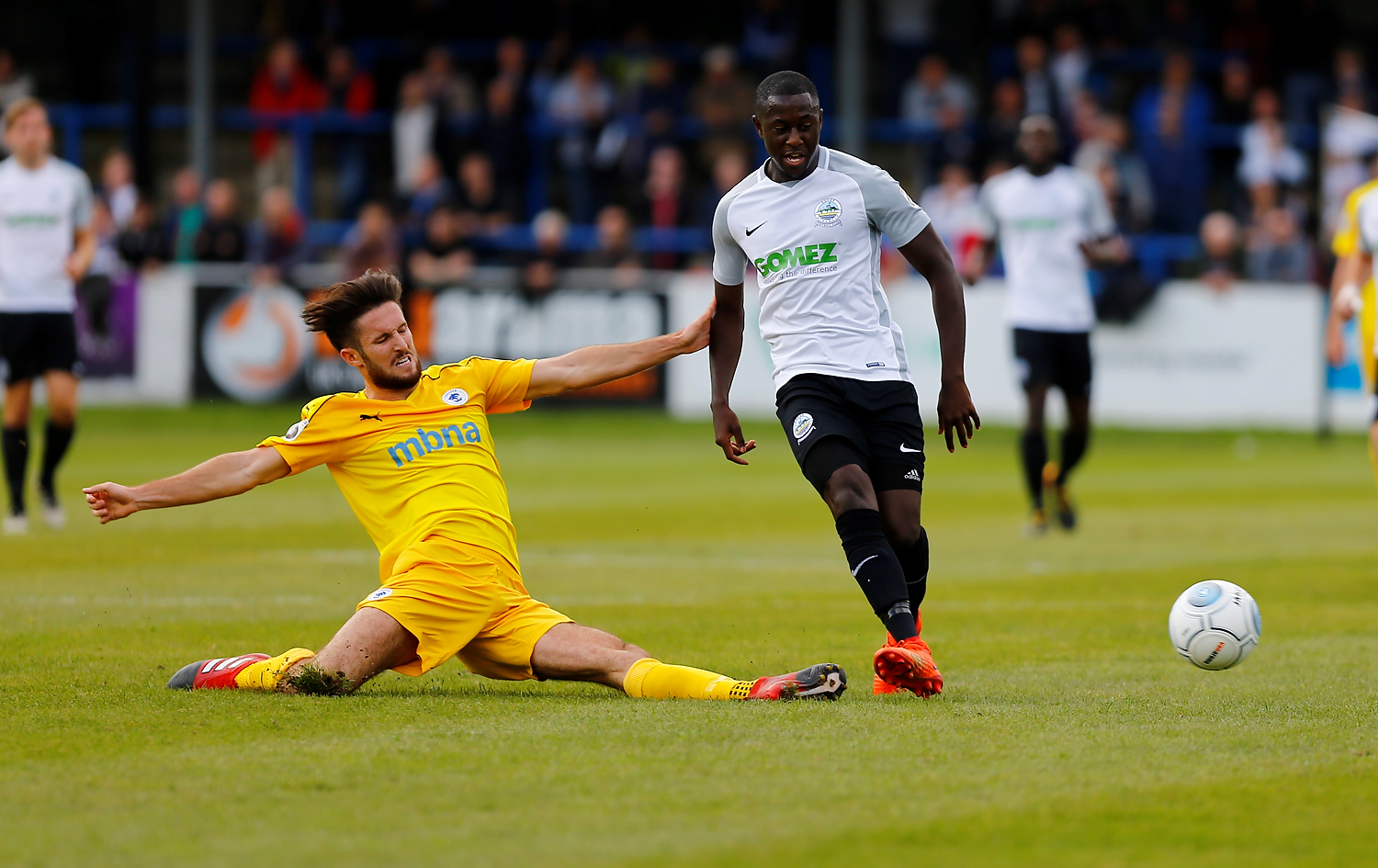 - Dovers midfielder Nortei Nortey clashes with Salford’s midfielder Danny Lloyd.