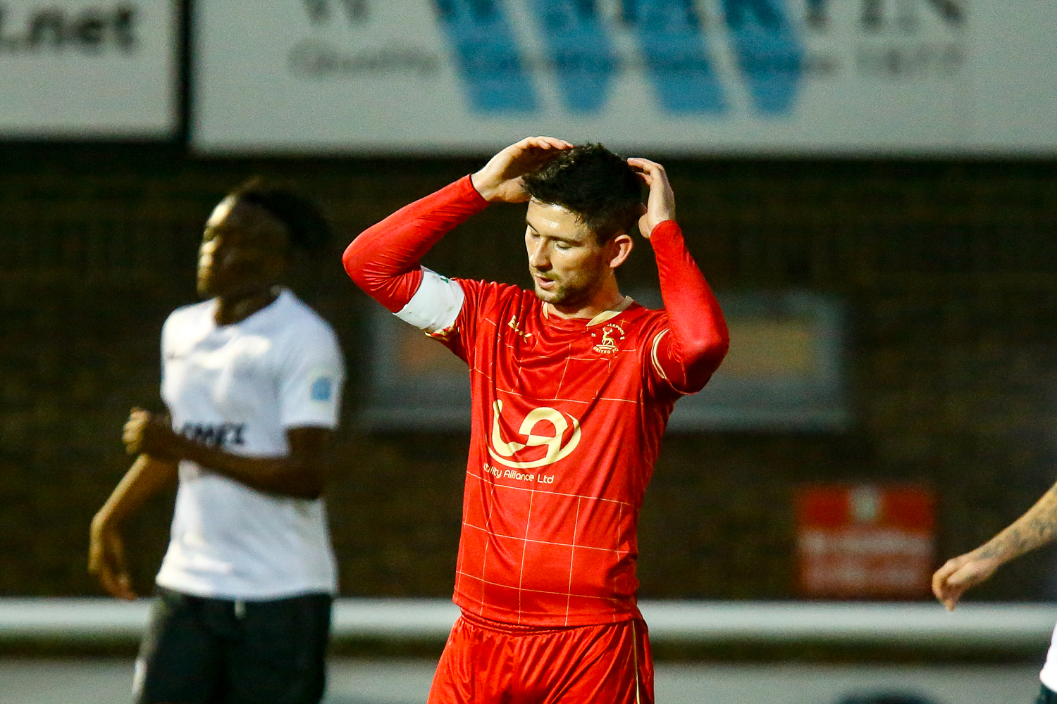 Braintrees Reece Grant had alot to celebrate as he bagged himself a brace against Gloucester City