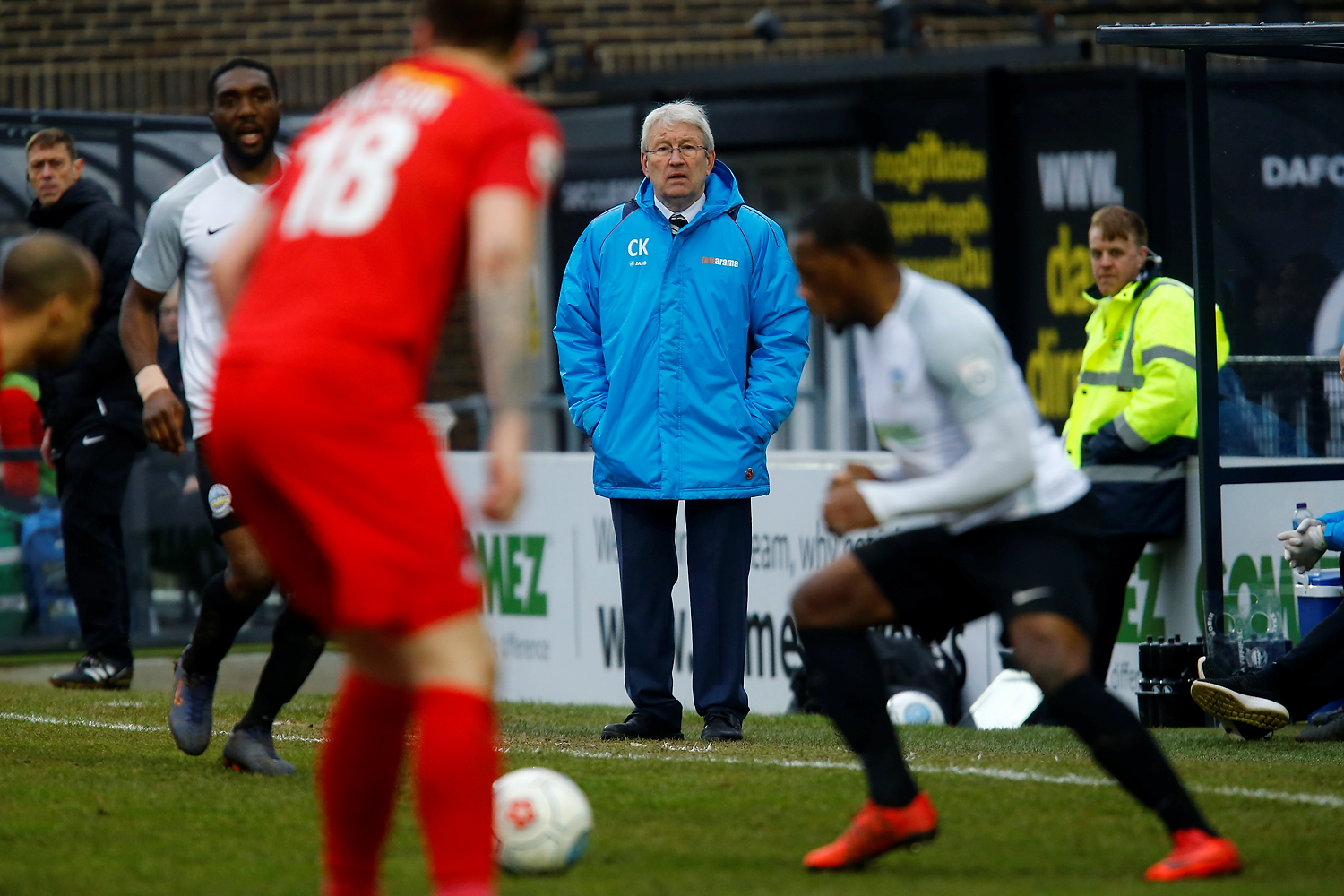 - Dover’s manager Chris Kinnear watches his side loose in a thrilling 4-3 during the The FA Trophy match between Dover Athletic and Leyton Orient at Crabble Stadium, Kent on 3 February 2018. Photo by Matt Bristow.