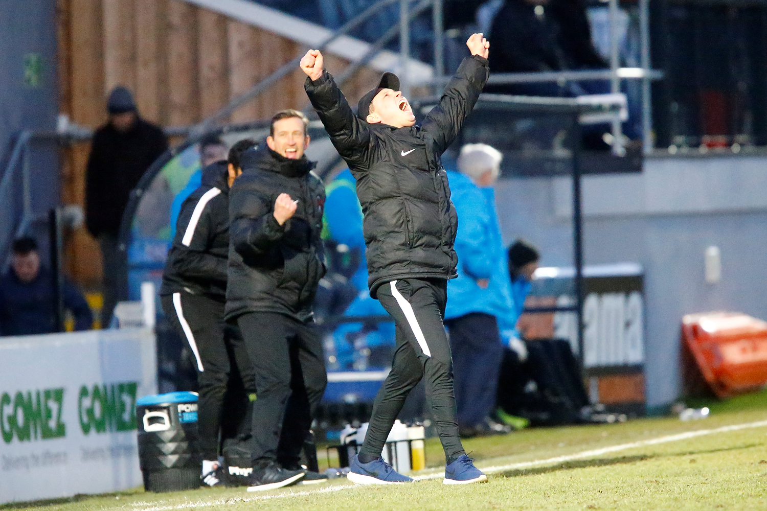 - Scenes of joy on the Orient bench at the final whistle during the The FA Trophy match between Dover Athletic and Leyton Orient at Crabble Stadium, Kent on 3 February 2018. Photo by Matt Bristow.