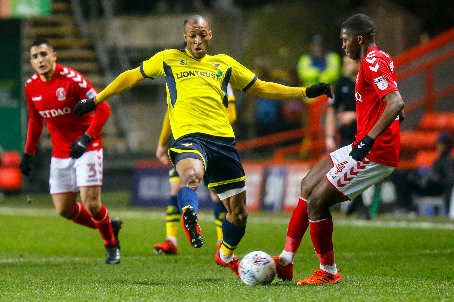 - Oxford’s forward Wes Thomas tries to get a toe to the ball ahead of Charlton Athletics midfielder Johnnie Jackson during the EFL Trophy 3rd round match between Charlton Athletic and Oxford United at The Valley, London, England on 9 January 2018.