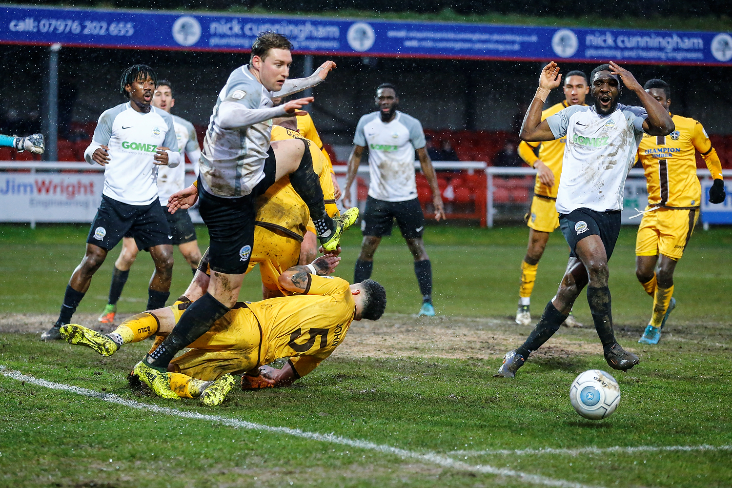 Dover Athletic v Dagenham and Redbridge FC. The Whites were looking to pull themselves out of a lack lustre run and get back into the playoff running. Right from the start they looked like a side on a mission. It was Mitch Pinnocks overhead kick that turned out to be the winner. It could quite possibly turn out to be a contender for the goal of the season.