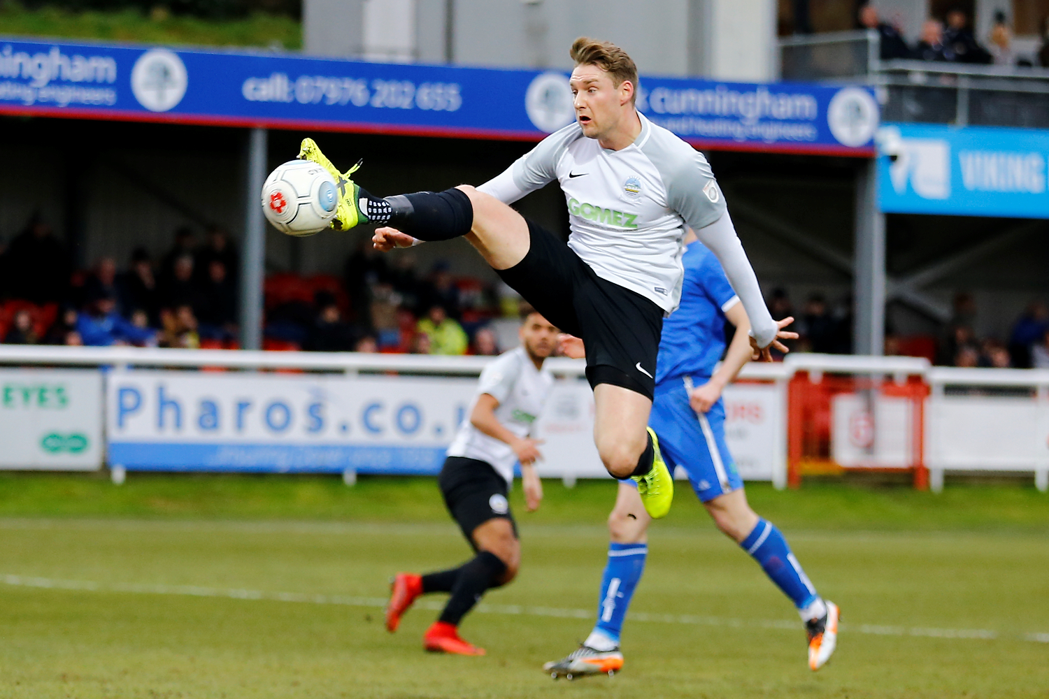 Its been a pretty hard week/season at Dover. No Sh*t Sherlock I hear you say. But, probably not for the reasons that are immediately obvious. But enough of that as I am no pundit or reporter, I am just a humble photographer that sits and takes pictures of what happens in front of me! Here are just a few personal favourites from today’s clash against high flying Salford City FC. It was however, not the result that the club wanted but in my opinion a lot of positives to take away. To be fair the difference was this fella, Adam Rooney currently top scorer in the league, and today he bagged a hat trick in what has to be said style.