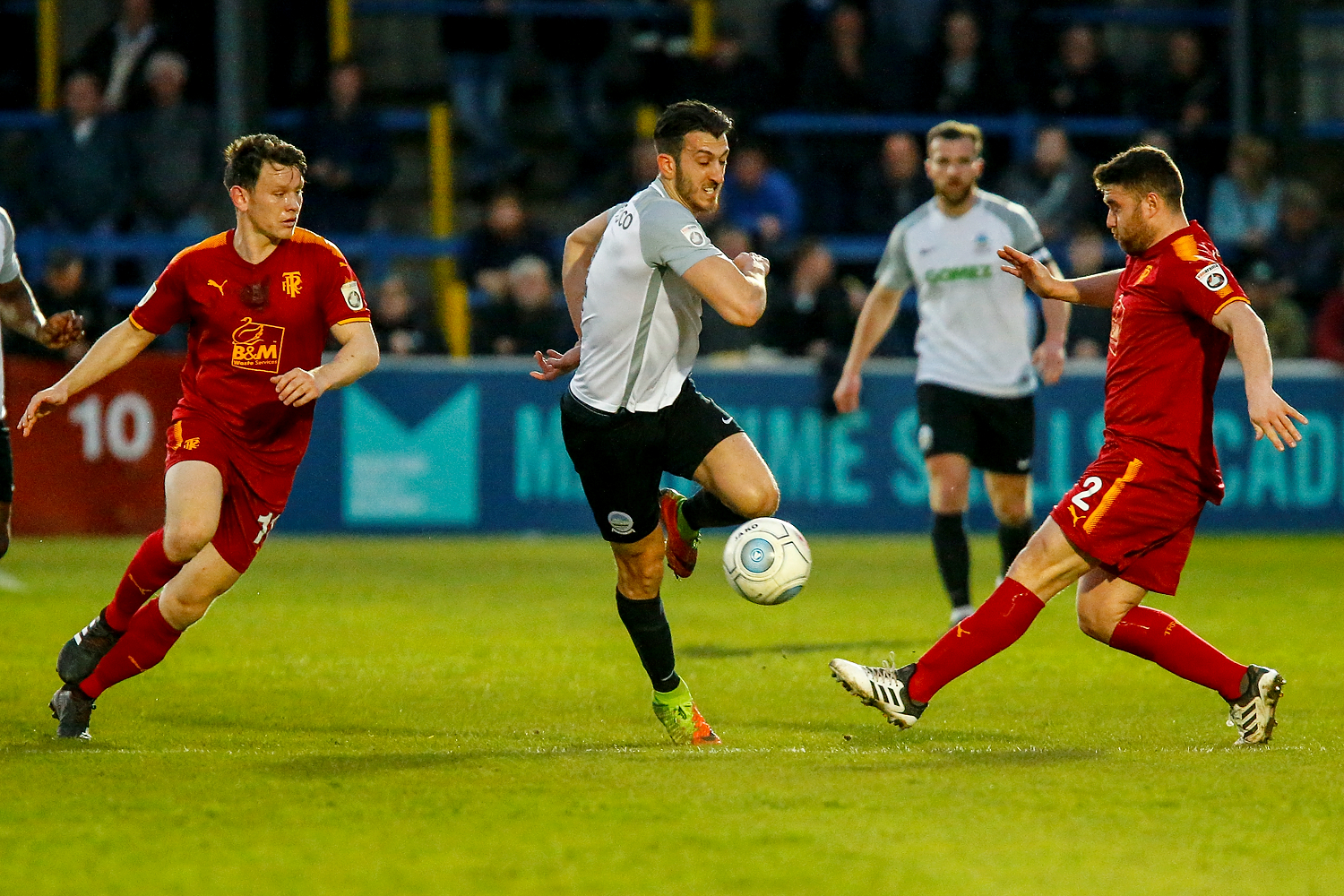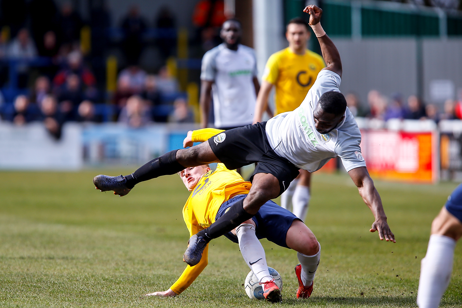 - Dovers midfielder Nortei Nortey clashes with Salford’s midfielder Danny Lloyd.