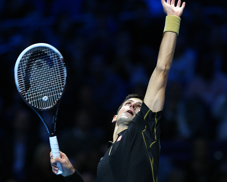 Novak Djokovic plays Marin Cilic in the group B opening games. Barclays ATP World Tour Finals 2014. London O2 Arena. (c) Matt Bristow